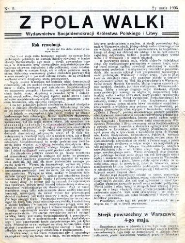 While on the spot, he decided to report on current events in a supplement to the "Red Banner"-"From the Field of Struggle"-which informed workers about the situation in all regions of the Kingdom about ongoing events and repressive measures taken by the tsarist regime. He sent his reports by post suitably camouflaging them. He usually resorted to subterfuge to prevent his letters falling into the hands of the censors, writing in the first words about his aunt's health and later reporting on events.