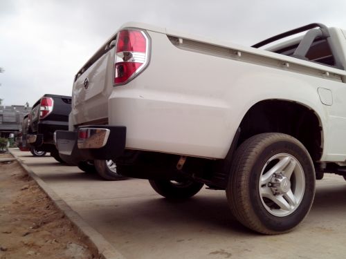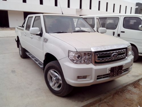Na Fodayach nic naklejone nie było. A teraz opis techniczny. Silnik w dieslu 2800ccm na mechanicznej pompie, kolejna kopia silnika Nissana z modyfikacjami chińskich inżynierów. Pięć biegów w manualnej skrzyni, napędy łączone z kabiny. Spalanie nie miało znaczenia, bo ropa była po ćwierć dolara. Ale i tak palił przyzwoicie. W warunkach skrajnie ciężkich jeden egzemplarz zrobił w dwa lata ponad 250000km jeżdząc non stop i wożąc ciężary. Każdy Foday padł na wtryski, bo paliwo było tak chrzczone, że sam Szatan sikał do baku, do tego nasrał i się zrzygał, a Jezus błogosławił. Nic nie padło tylko wtryski niemożliwe do regenreacji, a koszt nowych to 1/4 wartości całego auta.